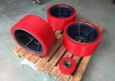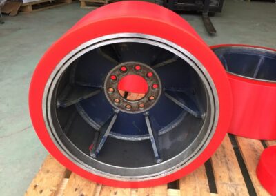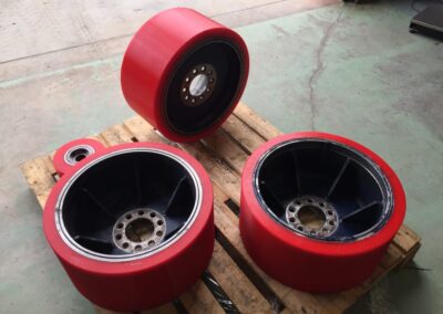 Snap S.r.l. offre un servizio di rivestimento di gommatura per ruote che combina precisione e resistenza, ideale per applicazioni industriali e commerciali. Utilizziamo elastomeri poliuretanici altamente performanti, capaci di garantire eccellente durata e resistenza nel tempo. Il nostro servizio è adatto per ruote con diametro fino a 1300 mm e può essere applicato tanto su ruote metalliche quanto in Nylon, con la possibilità di variare spessori e durezze a seconda delle specifiche esigenze del cliente.