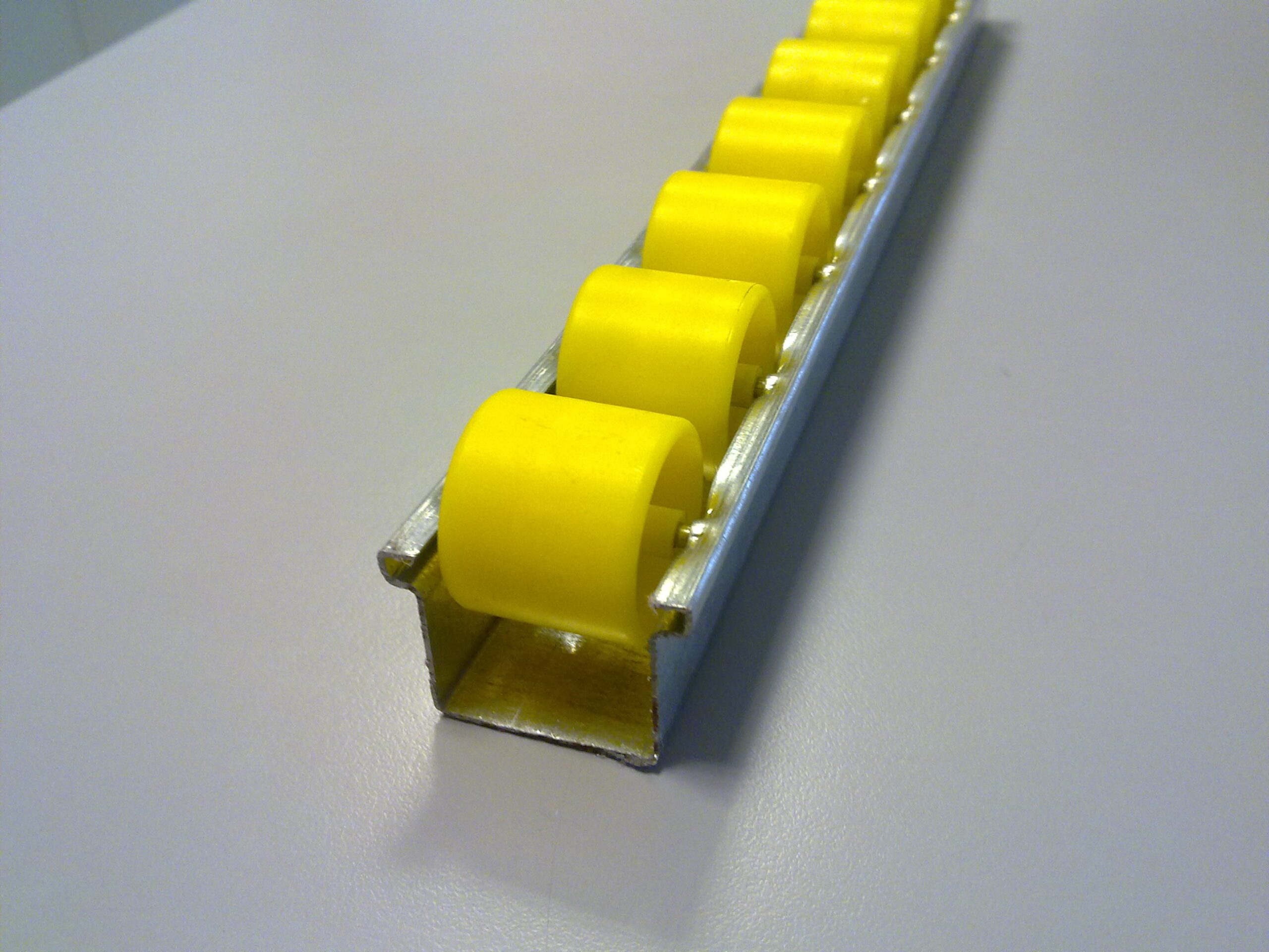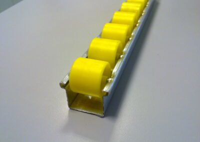 Caratterizzati da rullini piani o flangiati in Polipropilene PP, montati su profilo ad “Omega” in acciaio zincato, i nostri profili garantiscono una resistenza e una durata eccellenti. Con un passo rullini di 33 mm e un diametro di 28 mm, offriamo soluzioni precise e affidabili per il tuo magazzino o ambiente di stoccaggio.